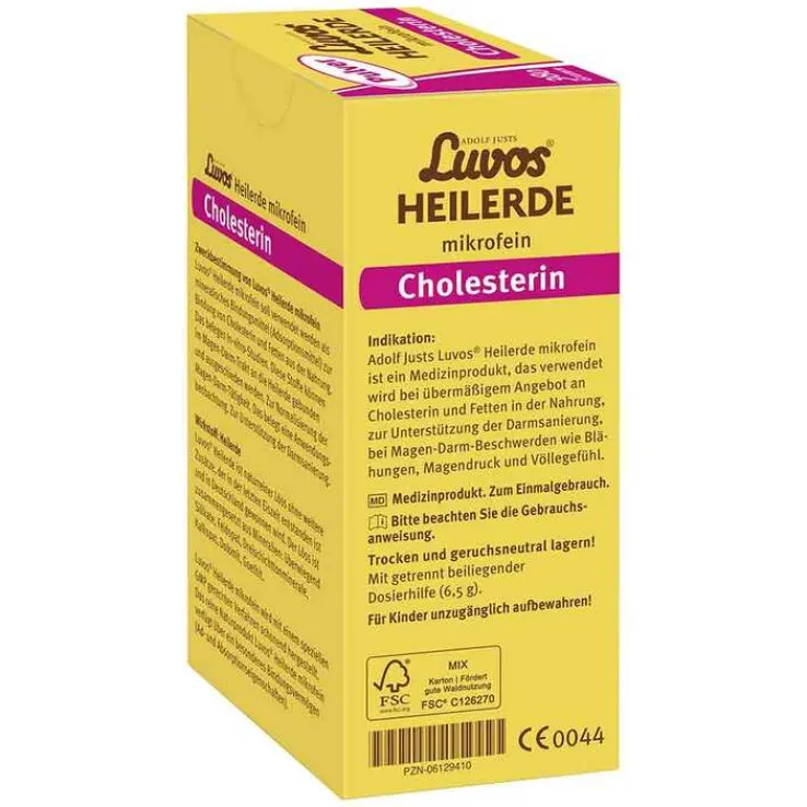 Zusätzlich bindet die naturreine Luvos® Heilerde im Darm Gallensäuren, sodass diese vermehrt ausgeschieden werden. Dies regt die Neubildung von Gallensäuren an, wofür der Körper Cholesterin verbraucht. Damit unterstützt Luvos-Heilerde mikrofein eine herzgesunde Ernährung. Nebenwirkungen sind nicht bekannt.