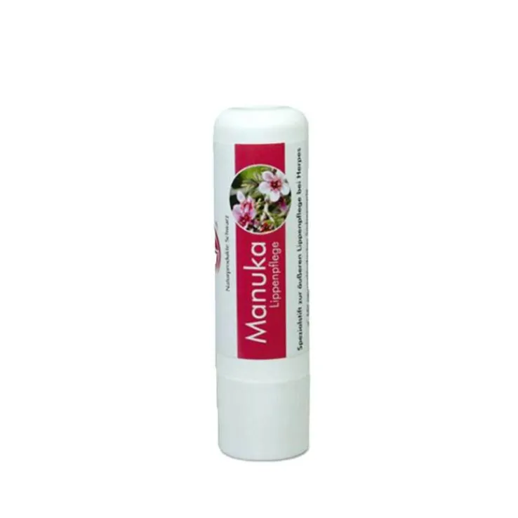 Manukaöl (Leptospermum scoparium) wird in Neuseeland schon seit vielen Jahren als naturreines Hausmittel bei Herpes genutzt. Sie sollten mit der Pflege der Lippen bereits bei ersten Spannungsgefühlen und Jucken starten. Bei bestehendem Lippenherpes kann der Lippenstift mehrmals täglich angewendet werden.