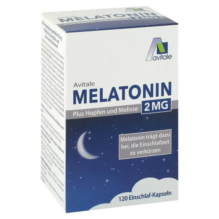 Ausreichender und erholsamer Schlaf ist für die körperliche und mentale Regeneration enorm wichtig. Avitale Melatonin 2mg ist ein Kombinationspräparat mit dem Schlafhormon Melatonin plus Hopfen und Melisse. Die Einschlaf-Kapseln zur Verkürzung der Einschlafzeit* enthalten 2 mg Melatonin pro Kapsel.