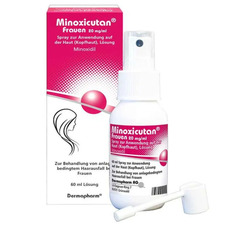 Minoxicutan Frauen 20 mg/ml Spray zur Anwendung auf der Kopfhaut Anwendungsgebiet: stabilisiert den Verlauf der androgenetischen Alopezie bei Frauen (charakteristische anlagebedingte diffuse Kopfhaarverdünnung im Parietalbereich) und fördert das Haarwachstum und kann so dem Fortschreiten dieser Alopezie entgegenwirken. Warnhinweis: Enthält Propylenglycol (E 1520). Enthält leicht entzündlichen Ethanol. Vermeiden Sie Feuer, Flammen oder Rauchen, bis das Spray getrocknet ist. Hypertrichose bei Kindern nach versehentlicher topischer Exposition gegenüber Minoxidil. Stand: 10/2024 Zu Risiken und Nebenwirkungen lesen Sie die Packungsbeilage und fragen Sie Ihre Ärztin, Ihren Arzt oder in Ihrer Apotheke.