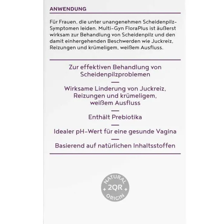 - Multi-Gyn® FloraPlus basiert auf dem patentierten, natürlichen 2QR-Wirkkomplex.