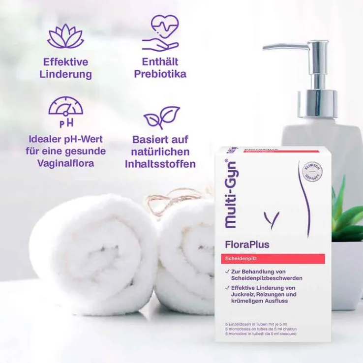 Mit dem Scheidenpilz-Gel Multi-Gyn® FloraPlus können Sie die Symptome einer Pilzinfektion effektiv behandeln: