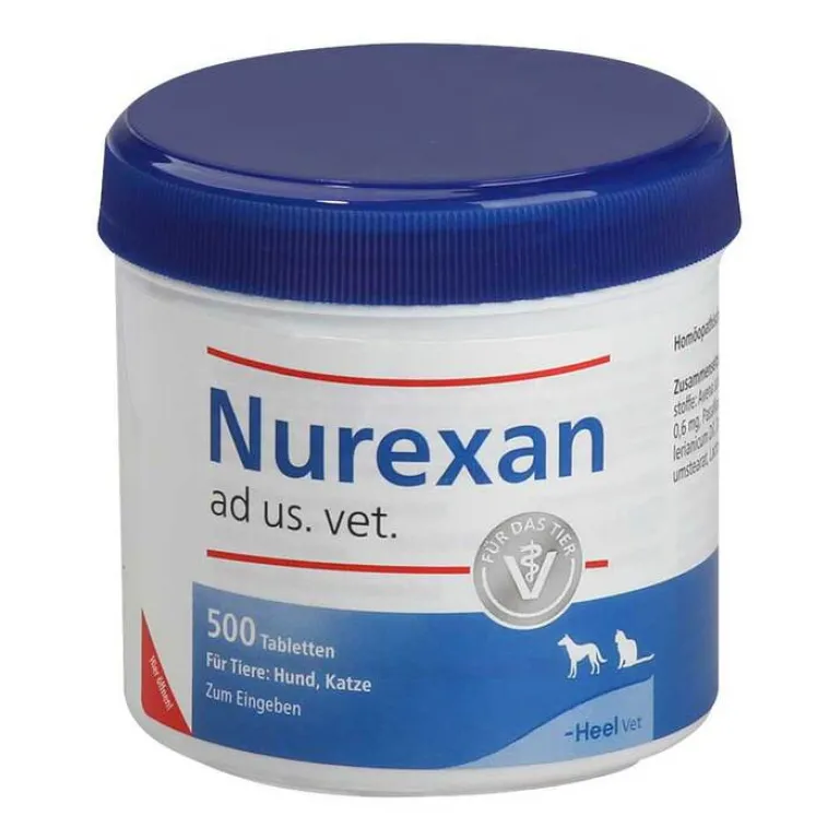 Nurexan® ad us. vet. Tabletten Reg.-Nr.: 402673.00.00 Registriertes homöopathisches Arzneimittel, daher ohne Angabe einer therapeutischen Indikation. Wartezeit: Entfällt Zu Risiken und Nebenwirkungen lesen Sie die Packungsbeilage und fragen Sie die Tierärztin, den Tierarzt oder in Ihrer Apotheke. Biologische Heilmittel Heel GmbH, 76532 Baden-Baden, Dezember 2023