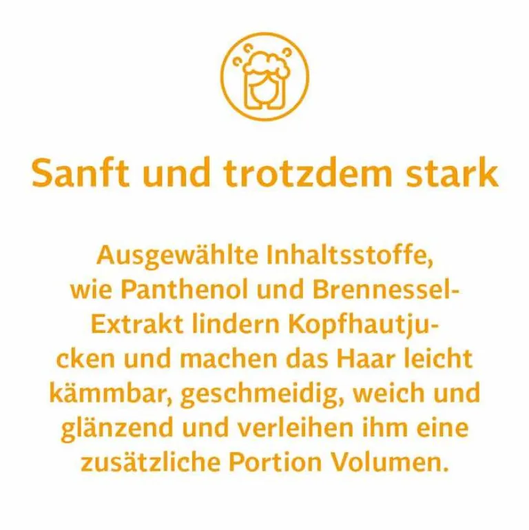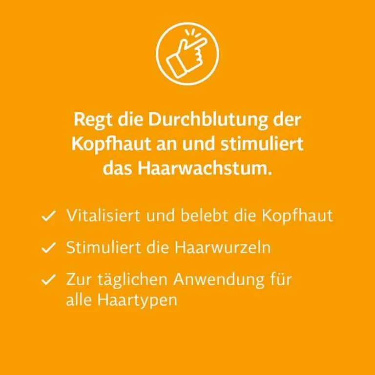 Je nach Haarlänge eine haselnuss- bis walnussgroße Menge auf die Hand geben, gleichmäßig auf der Kopfhaut verteilen und mit den Fingerspitzen einmassieren. Kurz einwirken lassen und sehr gründlich ausspülen.