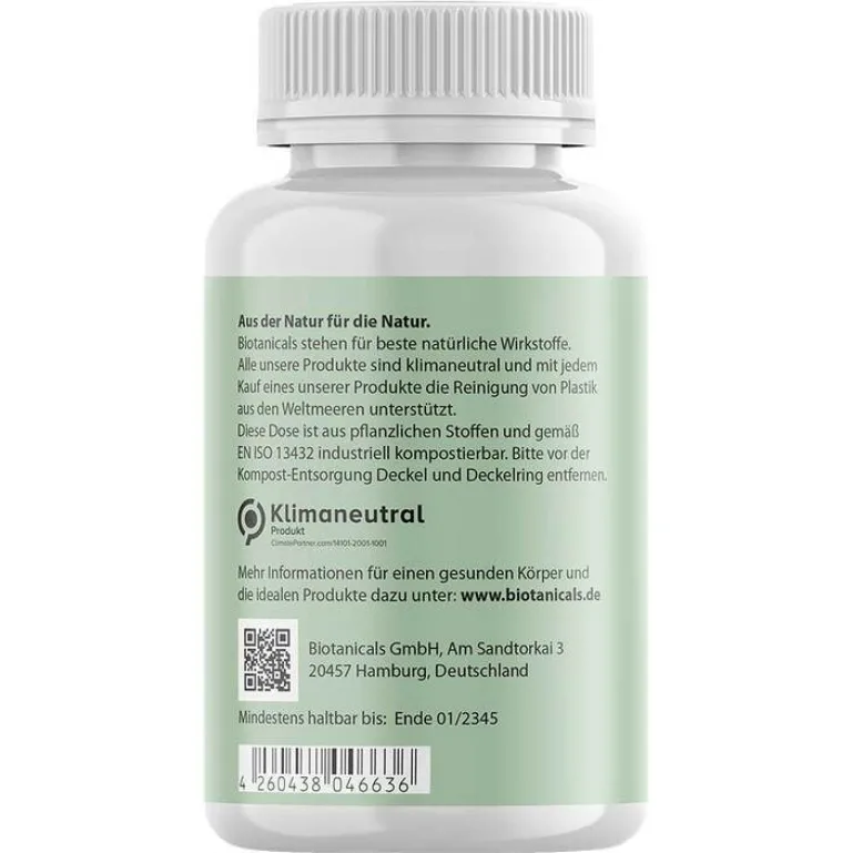 Biotanicals OPC wird als Qualitätsprodukt in Deutschland hergestellt. Durch die Verwendung von Dosen aus Zuckerrohr wird der Kontakt der Kapsel mit Mikroplastik vermieden. Die Dosen sind kompostierbar und es wird weniger Mikroplastik in Umlauf gebracht. Das OPC ist zu 100% klimaneutral und mit dem Kauf wird die Reinigung von Plastik aus den Weltmeeren unterstützt.