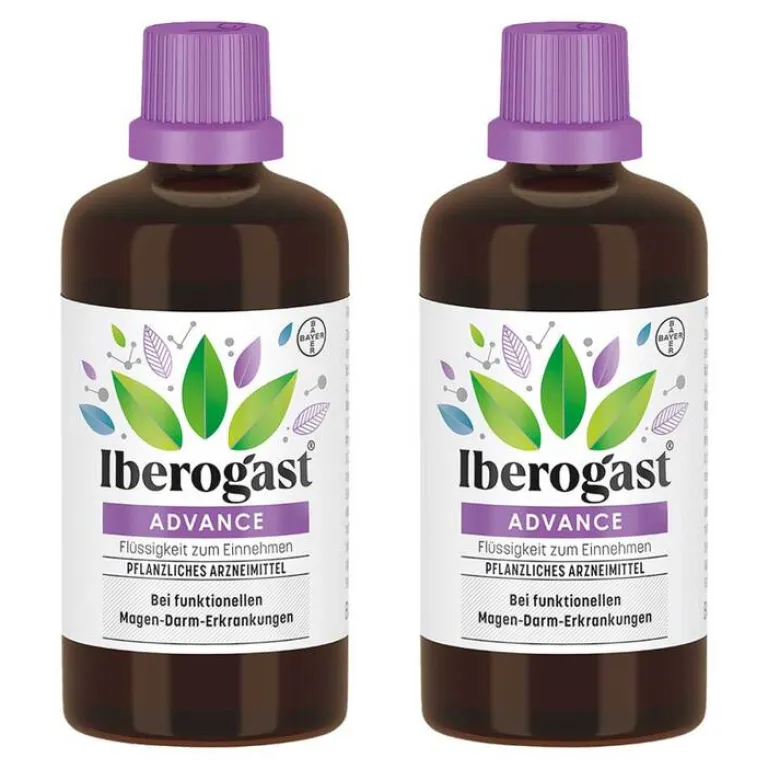 Iberogast® ADVANCE. Pflanzliches Arzneimittel bei Magen-Darm-Erkrankungen. Behandlung von funktionellen Magen-Darm-Erkrankungen wie Reizmagensyndrom (funktionelle Dyspepsie) und Reizdarmsyndrom (Colon irritabile). Das Arzneimittel enthält 240 mg Alkohol (Ethanol) pro 20 Tropfen. Stand: 09/2023. Bayer Vital GmbH, Kaiser-Wilhelm-Allee 70, 51373 Leverkusen, Deutschland. Zu Risiken und Nebenwirkungen lesen Sie die Packungsbeilage und fragen Sie Ihre Ärztin, Ihren Arzt oder in Ihrer Apotheke.