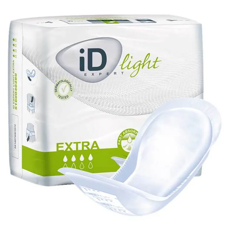 iD Light extra ist eine, speziell für Frauen entwickelte, Einlage bei leichter Inkontinenz. iD Light extra Einlagen sind individuell verpackt und geeignet für Tröpfcheninkontinenz bei Blasenschwäche. Diese Damenbinden sind anatomisch geformt und sorgen so für ein hohes Maß an Sicherheit und Diskretion.