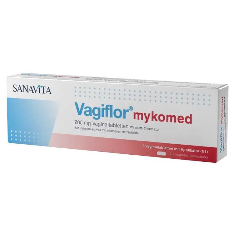 Vagiflor® mykomed 200 mg Vaginaltabletten Wirkstoff: Clotrimazol Anwendungsgebiete: Ausfluss, bedingt durch Pilze (meist Candida); Entzündung der Scheide durch Pilze, Superinfektionen mit Clotrimazol-empfindlichen Bakterien. Apothekenpflichtig Stand: 11/2023 Zu Risiken und Nebenwirkungen lesen Sie die Packungsbeilage und fragen Sie Ihre Ärztin, Ihren Arzt oder in Ihrer Apotheke.