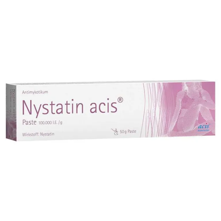 Nystatin acis® Paste Wirkstoff: Nystatin. Anwendungsgebiete: Hautinfekt. mit Nystatin-empfindl. Hefepilzen wie z.B. Windeldermatitis. Zu Risiken und Nebenwirkungen lesen Sie die Packungsbeilage und fragen Sie Ihre Ärztin, Ihren Arzt oder in Ihrer Apotheke. Stand: 04/2018.
