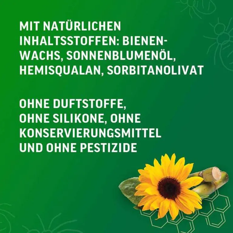 - Mit natürlichen Inhaltsstoffen: Bienenwachs und Sonnenblumenöl