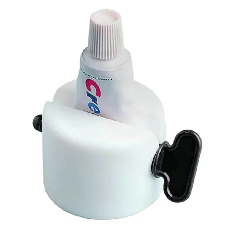 Die Anwendung ist für alle Arten und Größen von Zahnpasta-Tuben gedacht bis zu einer Breite von 5 cm. Durch das Drehen der Kunststoffschraube wird die Tube nach oben hin entleert, ohne Reste zu hinterlassen. Die praktischen Saugnäpfe verhindern, dass die Tube wegrutscht. Diese sind zur Anbringung auf glatten Flächen und Fliesen geeignet.