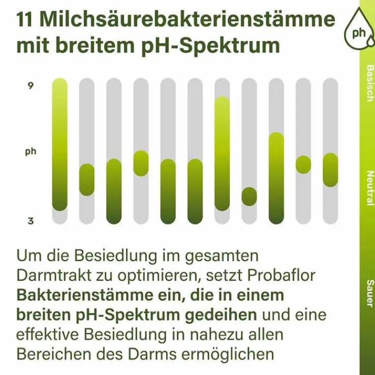 Nupure probaflor enthält 11 ausgewählte Stämme Milchsäurebakterien und Bifidobakterien, die natürlicherweise den menschlichen Darm besiedeln. Dort sind sie Teil der sogenannten Darmflora. Nupure probaflor enthält mindestens 20 Mrd. KBE zum Ende der Haltbarkeit.