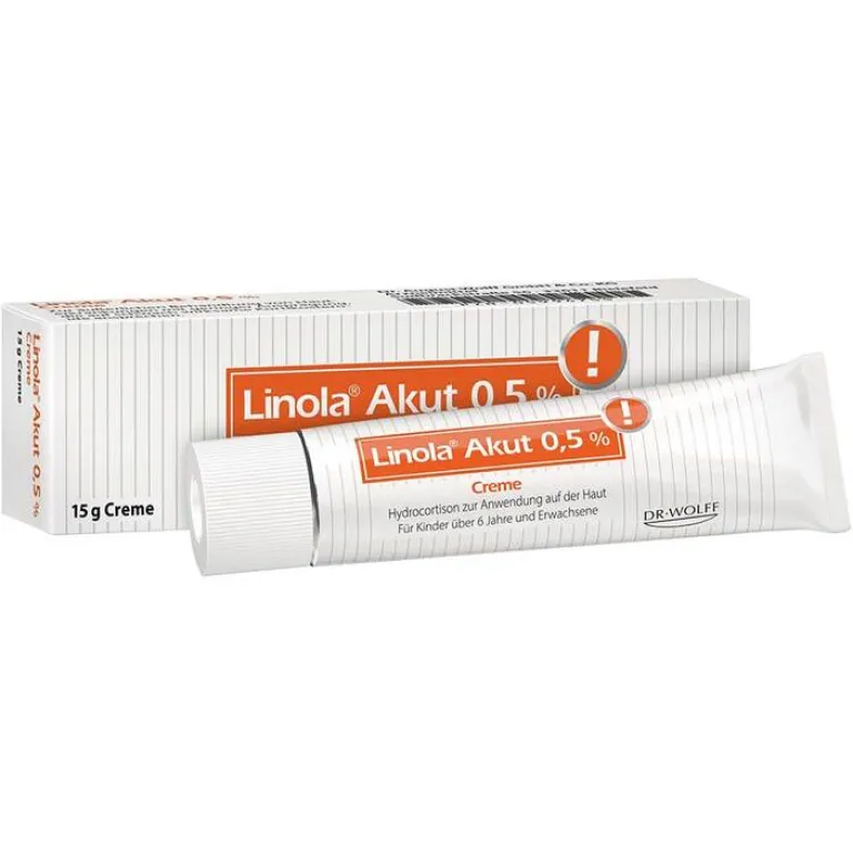 Linola® Akut 0,5%. Wirkstoff: 0,5% Hydrocortison. Anwendung: Bei Hauterkrankungen mit geringer Ausprägung, die auf eine äußerliche Behandlung mit schwach wirksamen Kortikosteroiden ansprechen. Zu Risiken und Nebenwirkungen lesen Sie die Packungsbeilage und fragen Sie Ihre Ärztin, Ihren Arzt oder in Ihrer Apotheke.
