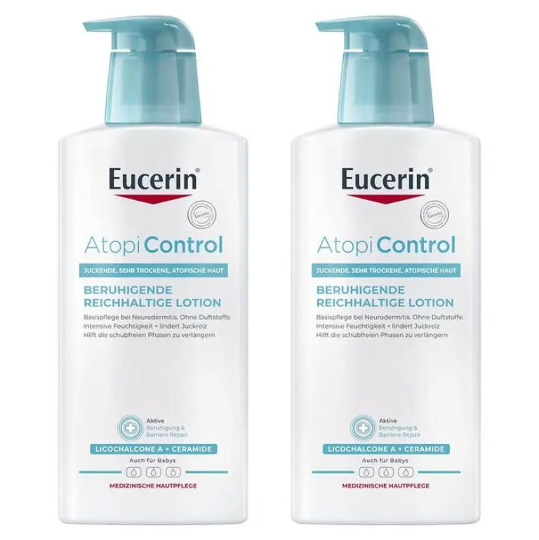 Eucerin AtopiControl Lotion (2x 400 ml) – beruhigt die Haut bei Neurodermitisbeschwerden und lindert Spannung und Juckreiz