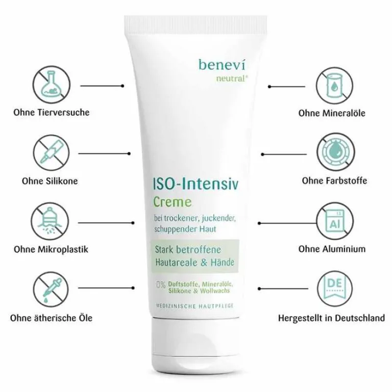 Ergänzend geeignet: Benevi Neutral ISO-Lotion als tägliche Pflege für den ganzen Körper.