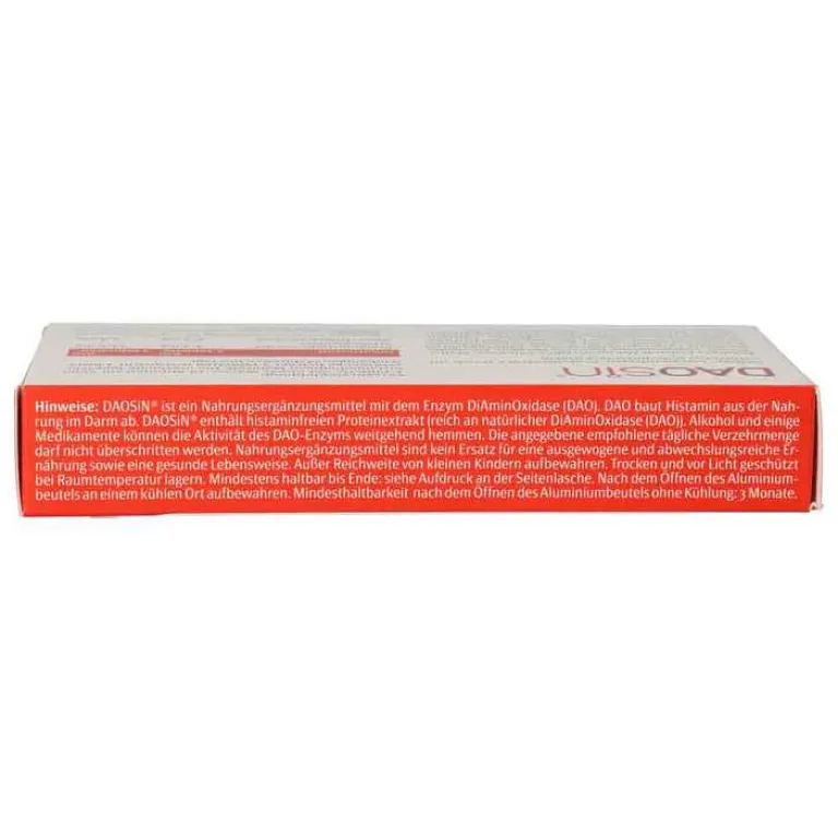 DAOSiN® ist ein Nahrungsergänzungsmittel mit dem Enzym DiAminOxidase (DAO) und ergänzt das körpereigene DAO-Enzym zum Histaminabbau aus der Nahrung.