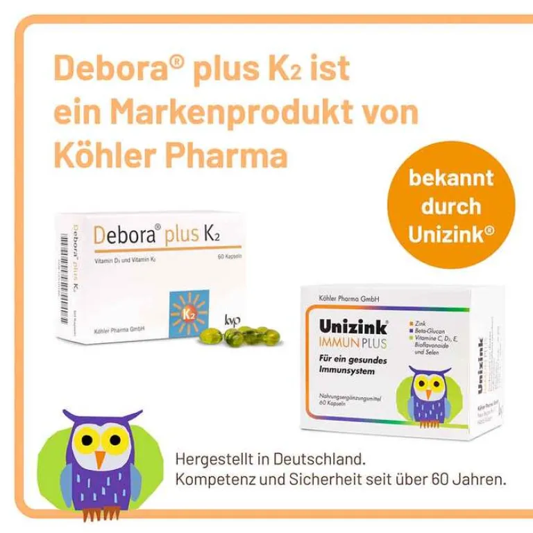 Die regelmäßige Einnahme von Debora plus K2 Kapseln hilft dabei, die benötigten Mengen von Vitamin D und K2 bereitzustellen und dadurch zweifach für gesunde Knochen sorgen.*