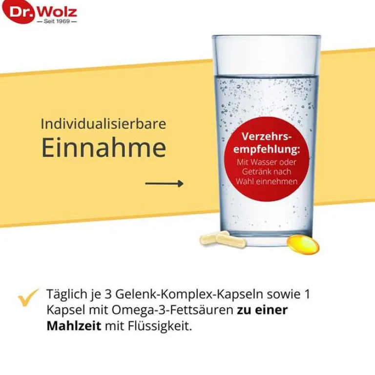 Die Kombinationspackung enthält 2 verschiedene Sorten Blister mit unterschiedlicher Wirkweise. Die Kapseln sind farblich unterschiedlich. Um die kombinierte Wirkung zu erzielen nehmen Sie täglich je 3 Komplex Kapseln sowie 1 Kapsel mit Omega-3-Fettsäuren zu einer Mahlzeit mit Flüssigkeit.