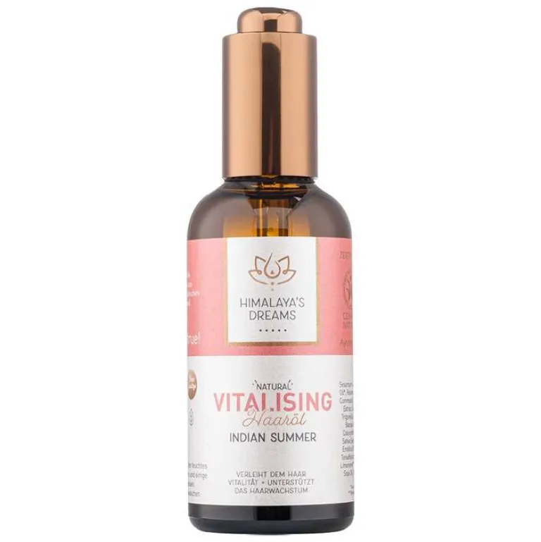 Das Haaröl Vitalising Indian Summer pflegt trockene und juckende Kopfhaut und hilft so Schuppenbildung zu reduzieren. Es ist reich an Omega-Fettsäuren, die das Haarwachstum fördern und helfen, geschädigtes Haar zu reparieren.
