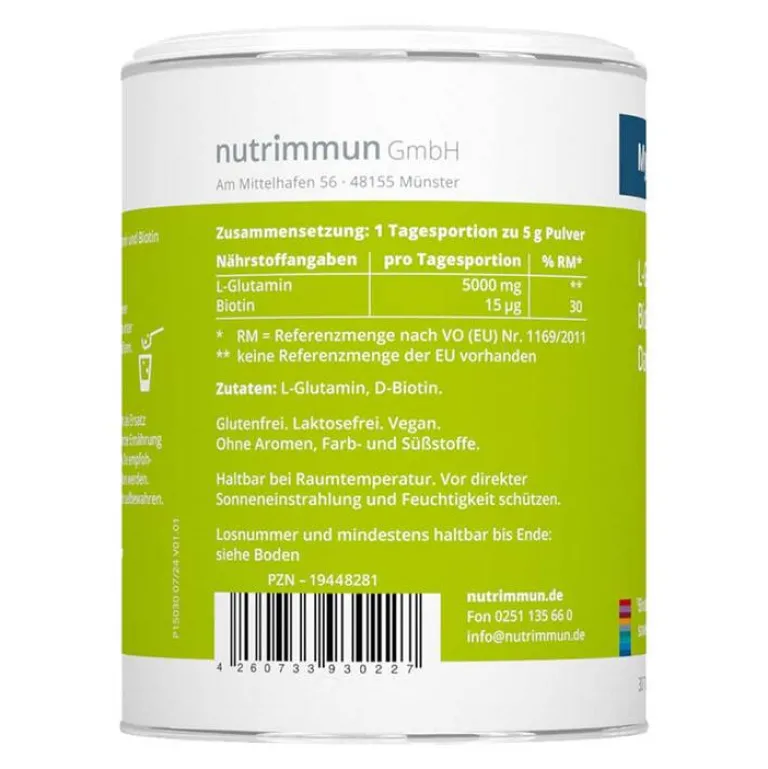 - Nahrungsergänzungsmittel mit L-Glutamin und Biotin