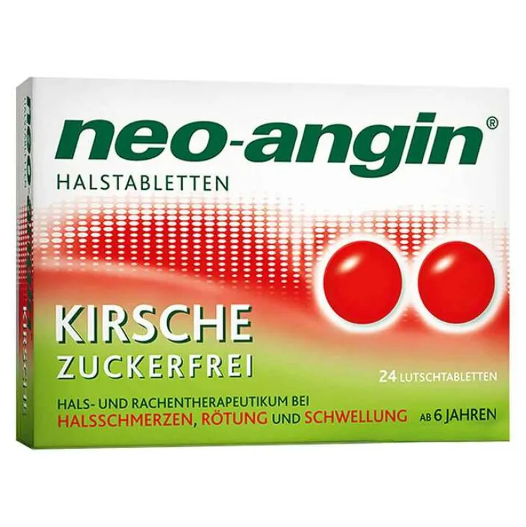 neo-angin® Halstabletten Kirsche. Anwendungsgebiete: Zur unterstützenden Behandlung bei Entzündungen der Rachenschleimhaut, die mit typischen Symptomen wie Halsschmerzen, Rötung oder Schwellung einhergehen. Zur Anwendung bei Erwachsenen und Kindern ab 6 Jahren. Wenn Sie sich nach 3 – 4 Tagen nicht besser oder gar schlechter fühlt, sollten Sie sich an Ihren Arzt wenden. Zu Risiken und Nebenwirkungen lesen Sie die Packungsbeilage und fragen Sie Ihre Ärztin, Ihren Arzt oder in Ihrer Apotheke.