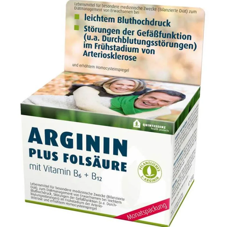 Arginin Plus Folsäure Kapseln zum Diätmanagement von Erwachsenen bei leichtem Bluthochdruck, Störungen der Gefäßfunktion (u.a. Durchblutungsstörungen) im Frühstadium der Arteriosklerose und erhöhtem Homocysteinspiegel:
