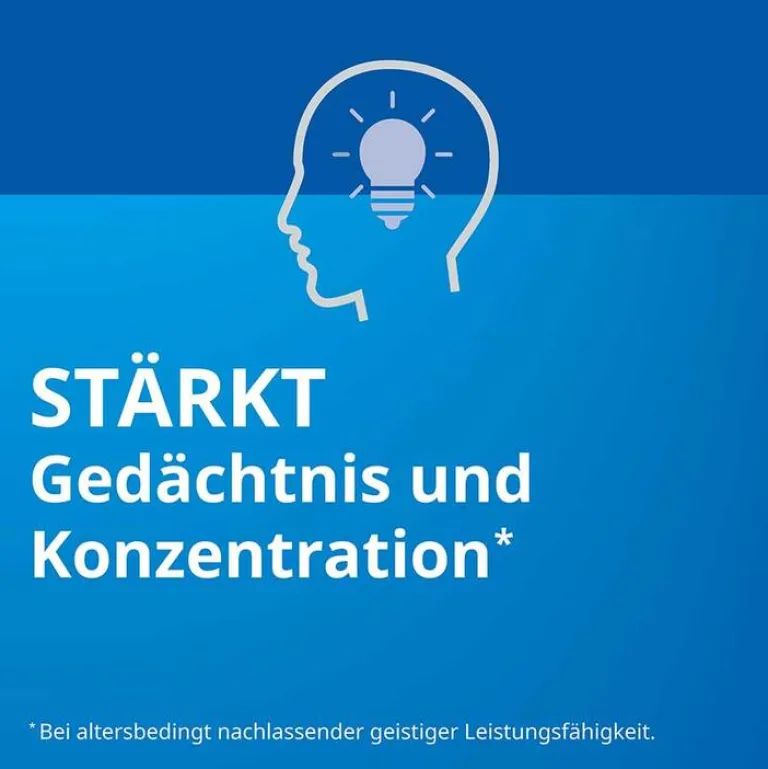 - Stärkt Gedächtnis und Konzentration bei altersbedingt nachlassender geistiger Leistungsfähigkeit