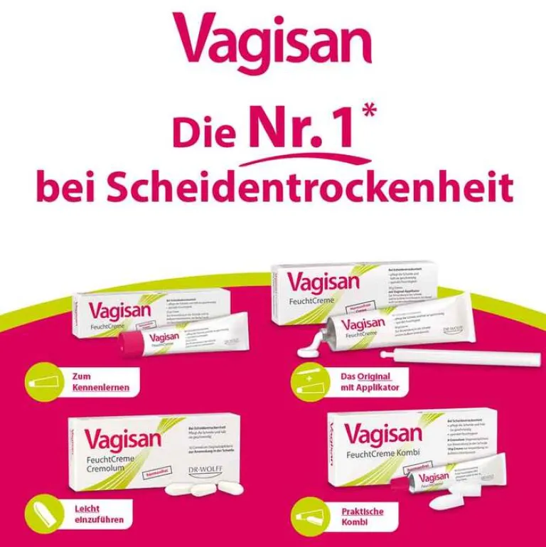 Die regelmäßige Anwendung von Vagisan FeuchtCreme kann dazu beitragen, durch vaginale Trockenheit bedingte Reizungen, Entzündungen und Schmerzen in der Scheide und im äußeren Intimbereich vorzubeugen.