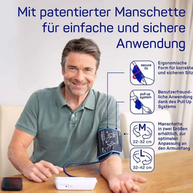 - EINFACHE & SICHERE ANWENDUNG: Ergonomisch geformte Manschette erleichtert korrektes Messen & verhindert ein Verdrehen beim Anlegen der Manschette.