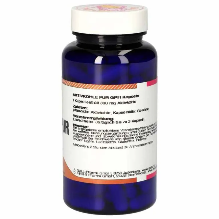 - 3 Kapseln enthalten 300 mg Aktivkohle