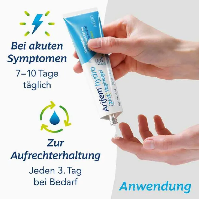 Arifem® hydro wird angewendet zur Linderung und Vorbeugung von Beschwerden, die durch Trockenheit in der Scheide und im äußeren Intimbereich hervorgerufen werden. Scheidentrockenheit verursacht häufig Juckreiz, Brennen und Schmerzen beim Geschlechtsverkehr.