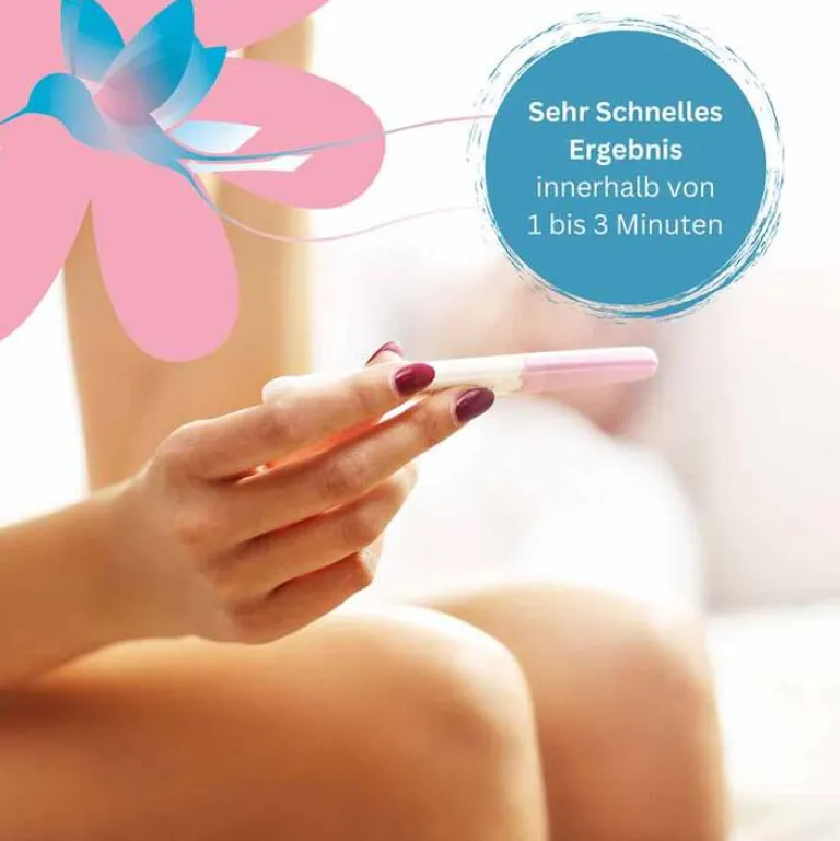 Dank des praktischen Teststreifens auf einem Teststab mit Schutzkappe ist die Anwendung besonders hygienisch und einfach. Innerhalb von nur 1-3 Minuten zeigt der Test zuverlässig das Ergebnis an, indem er das Schwangerschaftshormon hCG in einer Konzentration von nur 10 mlU/ml nachweist.