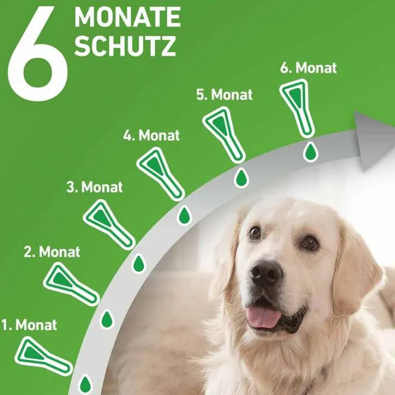 - Wirkt schützend: Zecken, Flöhe, Haarlinge auf dem Tier und auch Floheier, Flohlarven und Flohpuppen in der direkten Umgebung des Tieres werden wirksam abgetötet.