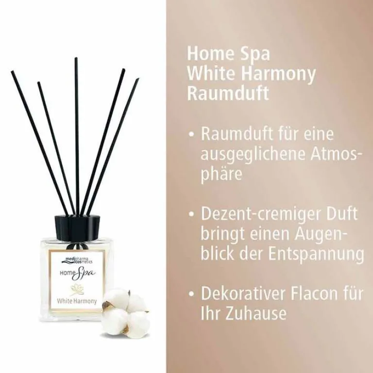 Der medipharma cosmetics Home Spa White Harmony Raumduft ist geeignet für einen Wellness-Moment zu Hause.