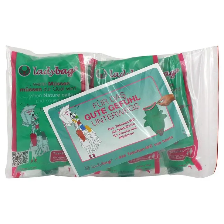 Schlange stehen, Ekel vor schmutzigen Toiletten? Nichts trinken, um nicht zu müssen? Vorbei – jetzt gibt es ladybag®, die ideale Nottoilette für Frauen.