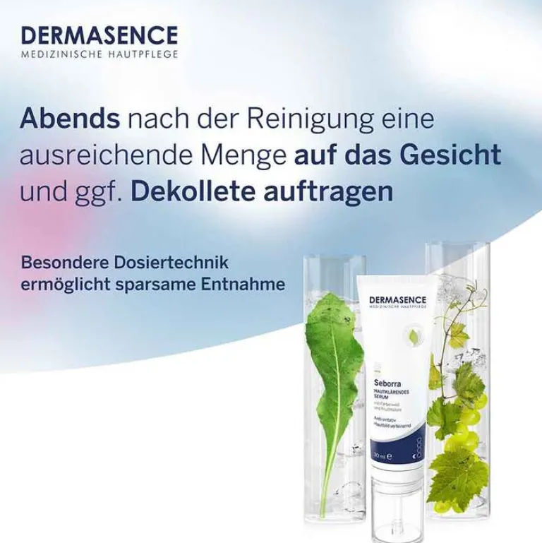 Tipp: Bei stark ausgeprägten Unreinheiten in Kombination mit dem Dermasence Seborra Pickel-Akutroller zu empfehlen. Um vor UV-bedingten Hautschäden zu schützen, empfehlen wir die Dermasence Seborra Leichte Tagespflege mit LSF 30.