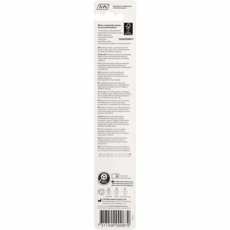 TePe Select Compact hat die gleichen Qualitäten wie die TePe Select, aber einen kleineren Bürstenkopf und ist sehr beliebt bei Kindern und Erwachsenen gleichermaßen, perfekt für kleine Münder und bei Neigung zu leichtem Würgreiz.
