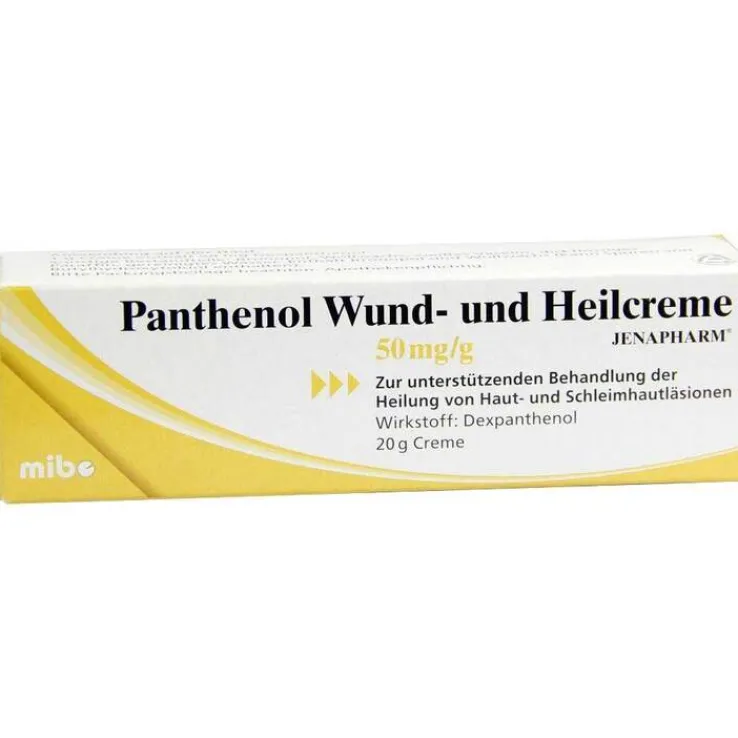 Panthenol Wund- und Heilcreme JENAPHARM® Zur unterstützenden Behandlung der Heilung von Haut- und Schleimhautläsionen. Warnhinweis: Enthält Bronopol und Wollwachs (kann Spuren von Butylhydroxytoluol enthalten). Kontakt mit den Augen ist zu vermeiden. Zu Risiken und Nebenwirkungen lesen Sie die Packungsbeilage und fragen Sie Ihre Ärztin, Ihren Arzt oder in Ihrer Apotheke. Stand: 10/2018. mibe GmbH Arzneimittel, 06796 Brehna.