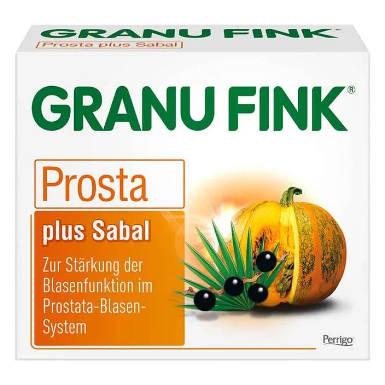 GRANU FINK® Prosta plus Sabal. Anwendungsgebiete: Traditionell angewendet zur Stärkung oder Kräftigung der Blasenfunktion nachdem schwerwiegende Erkrankungen durch einen Arzt ausgeschlossen wurden. Traditionel-les pflanzliches Arzneimittel zur Anwendung bei männlichen Erwachsenen ab 18 Jah-ren z.B. bei Blasenschwa¨che, zur Erleichterung der Blasenentleerung, zur Erhaltung der normalen Blasenfunktion ausschließlich auf Grund langjähriger Anwendung. Bei fortdauernden Krankheitssymptomen oder beim Auftreten anderer als der in der Packungsbeilage erwa¨hnten Nebenwirkungen sollte ein Arzt oder eine andere in ei-nem Heilberuf tätige qualifizierte Person konsultiert werden. Enthält Lactose. Packungsbeilage beachten. Zu Risiken und Nebenwirkungen lesen Sie die Packungsbeilage und fragen Sie Ihre Ärztin, Ihren Arzt oder in Ihrer Apotheke.