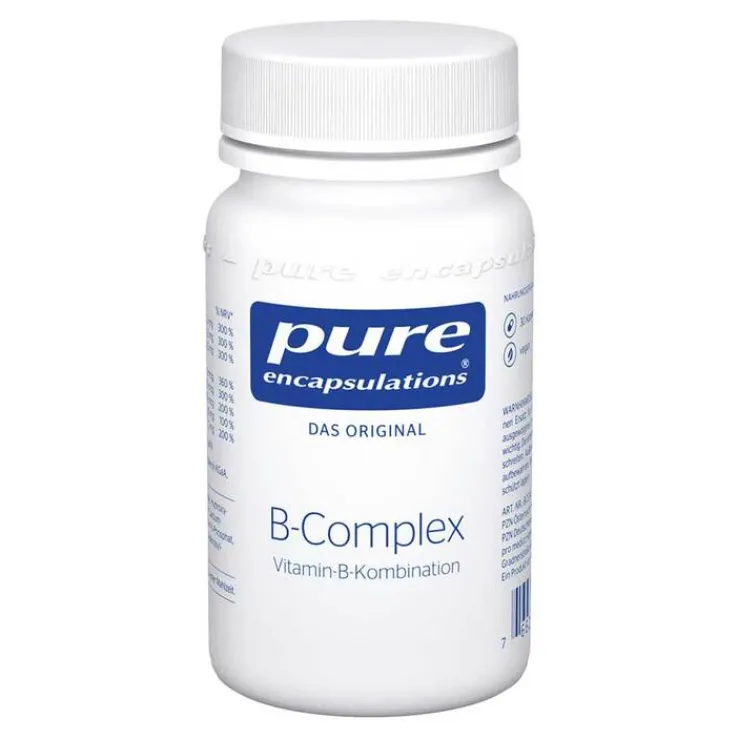 Bei der Zufuhr von B-Vitaminen ist es wichtig, dass diese rasch für die verschiedensten Prozesse verfügbar sind. B-Complex von Pure Encapsulations erfüllt dieses Kriterium ideal, da auf bereits biologisch aktive Verbindungen zurückgegriffen wird. So trägt beispielsweise Vitamin B6 zu einem normalen Homocystein-Stoffwechsel bei.* Die Vitamine B12 und Folsäure (Folat) beteiligen sich in ihrer Coenzym-Form an der Zellteilung und wirken unter anderem am Aufbau der Myelinscheiden, dem Schutzmantel der Nervenbahnen, mit.*