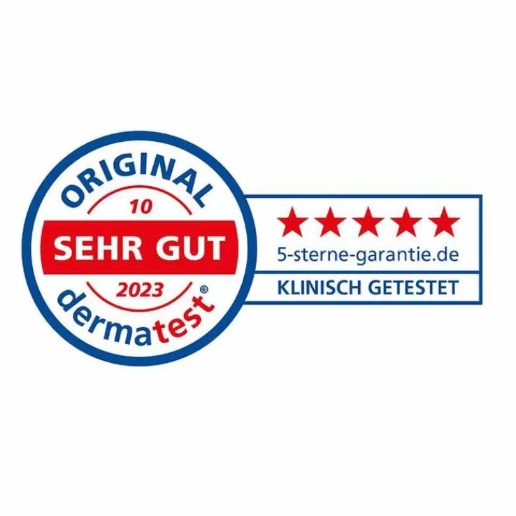 Hautärzte eines unabhängigen Testinstituts bescheinigen nach einer dermatologischen Studie ReJuval das best-mögliche Ergebnis, die Note sehr gut. Bei keiner Anwender-/in kam es zu Hautreaktionen, damit ist die Verträglichkeit exzellent. Basierend auf der Wirksamkeit und Verträglichkeit wurde die renommierte 5-Sterne Garantie von Dermatest ausgestellt.
