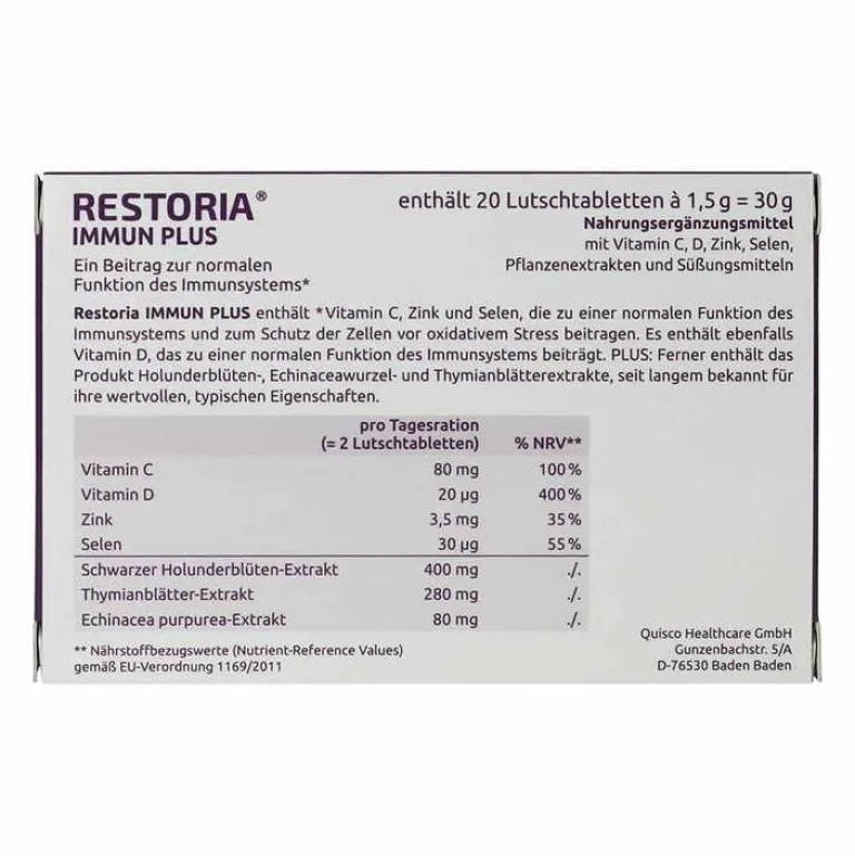 Schreibe die erste Bewertung für „Restoria Immun Plus Lutschtabletten, 20 St“ Antworten abbrechen