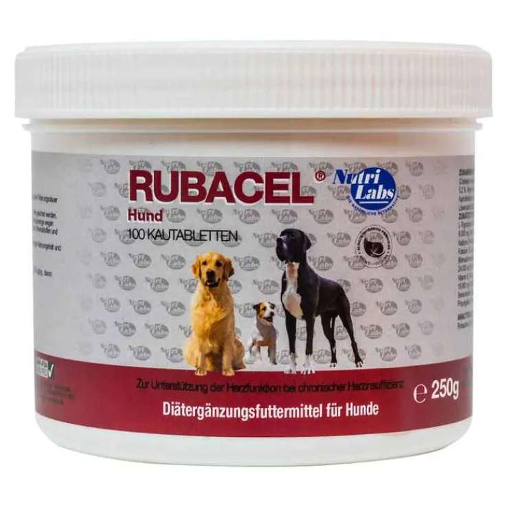Rubacel ist ein Ergänzungsfuttermittel für Hunde, das speziell auf den Stoffwechsel des Herzmuskels ausgerichtet ist und das Tier mit speziellen Mikronährstoffen zur Unterstützung eines kräftigen Herzschlages versorgt. So sind z.B. die Vorteile einer Versorgung mit Weißdorn, aber auch mit L-Carnitin für die Schlagkraft und die Energieversorgung des Herzmuskels wissenschaftlich gut belegt. Auch die Verbesserung der Blutfette durch Omegafettsäuren ist dabei ein wichtiger Vorteil. Rubacel wird besonders empfohlen für Tiere, die starken Belastungen für Herz und Kreislauf ausgesetzt sind.