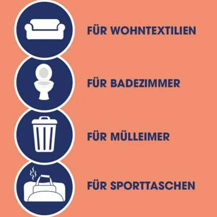 Anwendungsbereiche: Für alle Flächen und Gegenstände, die feucht abgewischt werden können, sowie Wohntextilien. Vor Anwendung Materialverträglichkeit an einer nicht sichtbaren Stelle prüfen.