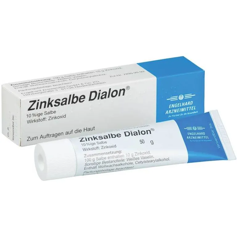 Zinksalbe Dialon®. Wirkstoff: Zinkoxid. Anwendungsgebiete: Zur Unterstützung der Wundheilung, auch bei nässenden oder juckenden Wunden, Schrunden; Verwendung als Decksalbe. Warnhinweise: Enthält Wollwachsalkohole und Cetylstearylalkohol! Zu Risiken und Nebenwirkungen lesen Sie die Packungsbeilage und fragen Sie Ihre Ärztin, Ihren Arzt oder in Ihrer Apotheke. Stand der Information: April 2014. Engelhard Arzneimittel GmbH & Co.KG., Herzbergstr. 3; 61138 Niederdorfelden. Telefon: 06101/539-300. Fax: 06101/539-315. Internet: www.engelhard.de. e-mail: [email protected]
