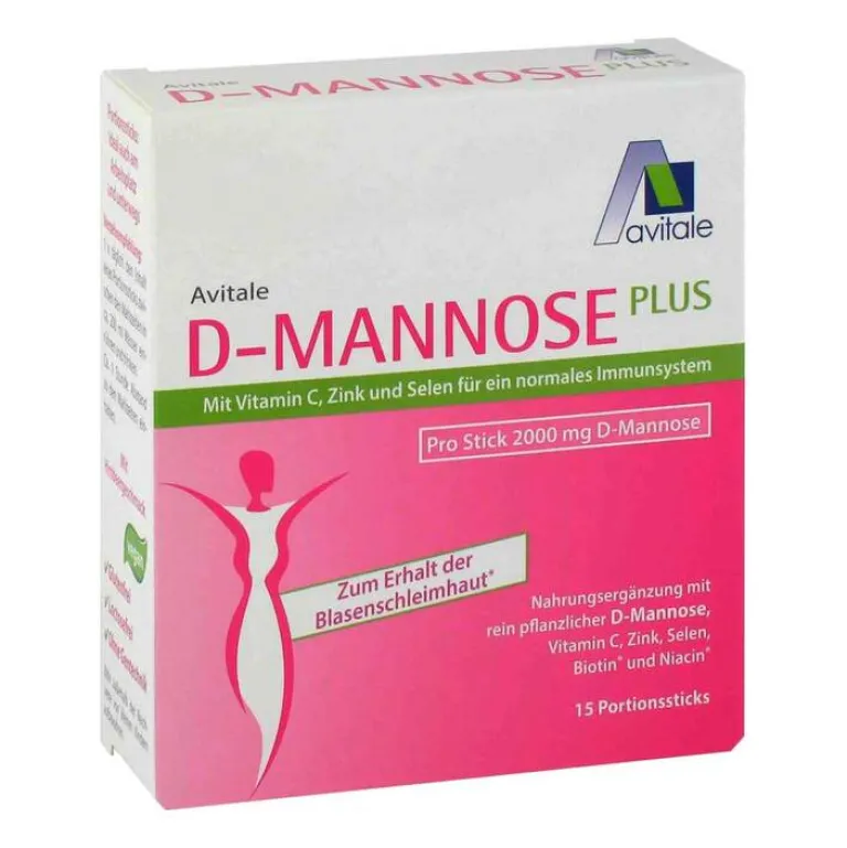D-Mannose ist eine in der Natur vorkommende Zuckerart, die mit Traubenzucker (Glucose) verwandt ist. Sie wird vom menschlichen Körper in geringem Umfang selbst hergestellt, aber kaum verwertet. Avitale D-Mannose Plus enthält rein pflanzliche D-Mannose, gewonnen aus Mais. Sie wurde ausgewogen kombiniert mit wichtigen Vitaminen und Mineralstoffen für das Wohlbefinden von Frauen.