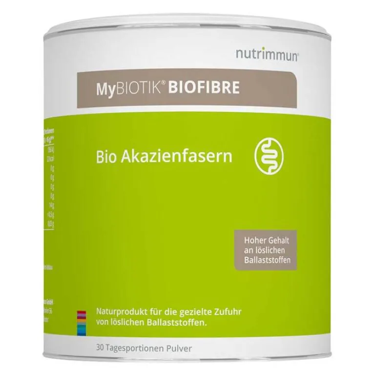 Mybiotic Biofibre Bio Akazienfaserpulver ist ein ballaststoffreiches Naturprodukt aus 100 % reinen Pflanzenfasern. Es enthält hochwertige lösliche Ballaststoffe, die eine ausgewogene Ernährung unterstützen. Ballaststoffe gehören zu einer gesunden Ernährung, da sie die Verdauung unterstützen, sättigend sind und der Darmflora als Nahrungsquelle dienen.