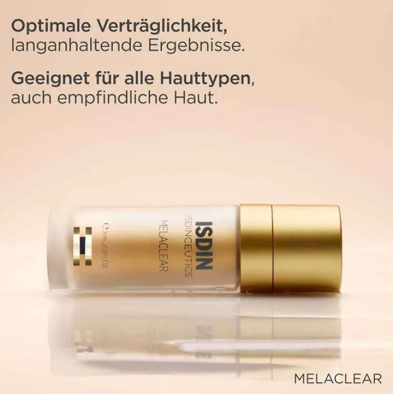Melaclear reduziert die Sichtbarkeit aller Arten von Pigmentflecken** deutlich und schnell, zudem ist es für alle Hauttypen geeignet.