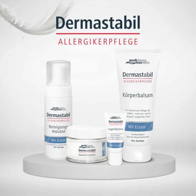 Einige Körperstellen, wie z. B. Ellenbogen und Knie, sind besonders häufig von trockener, irritierter Haut betroffen. Dermastabil Körperbalsam von medipharma cosmetics pflegt die Haut am ganzen Körper. Er stärkt und stabilisiert die natürliche Hautschutzbarriere und pflegt die von externen Stressfaktoren wie Allergenen und schädlichen Umweltschadstoffen belastete Haut. Dermastabil Körperbalsam mit der Wirkstoffkombination aus Ectoin und Glycerin wirkt hautberuhigend und kann Juckreiz lindern.