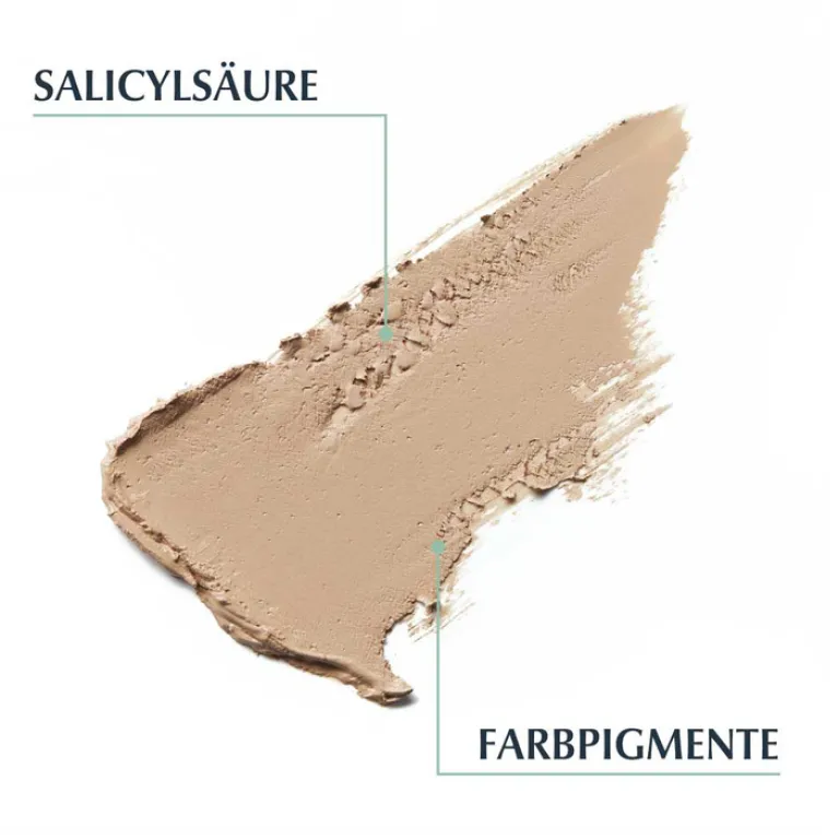 Der Eucerin DermoPure Abdeckstift wirkt gleich auf zweifache Art und Weise: Er deckt Hautunreinheiten sichtbar und sofort ab und reduziert zugleich nachweislich Pickel. Dies ist möglich, da der Stift den Wirkstoff Salicylsäure enthält. Durch die komedolytische Wirkung der Salicilsäure werden bei täglicher Anwendung des Abdeckstifts Mittesser aufgelöst.